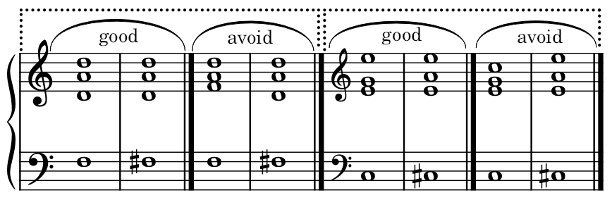Rule #2: Avoid doubling the note that will undergo a chromatic change whenever possible. Examples: