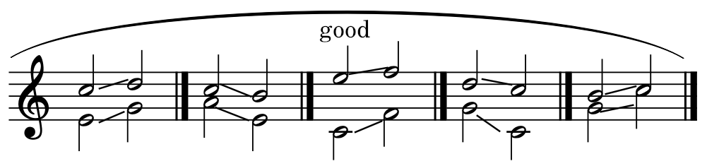 Exception: The upper part moves by adjacent notes, and the lower part leaps.