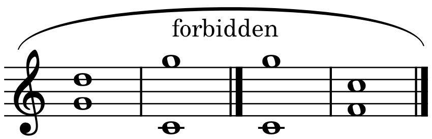 Rule 4: A direct fifth or direct octave (*), which is when two parts result in a perfect fifth, octave, or unison by similar motion, is forbidden. These intervals coming from similar motions generally produce a bad effect regardless of the parts.