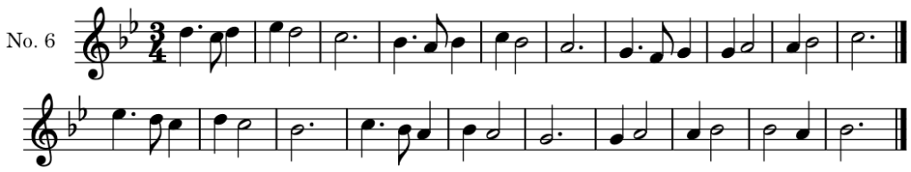 Listed below are proposed upper parts, or given melodies, intended to be harmonized. Add a satisfactory harmony, changing the chord at each note where the root is always in the Bass, according to the guidelines prescribed in this chapter.