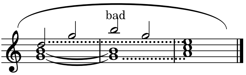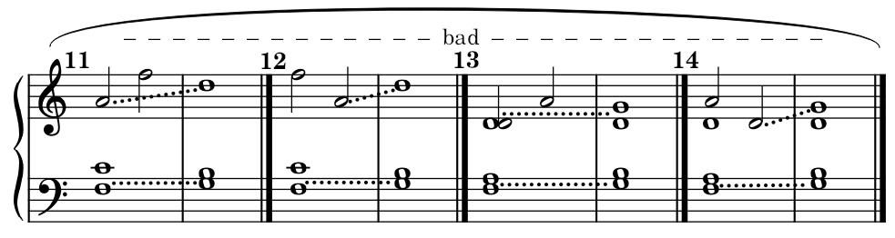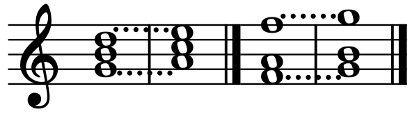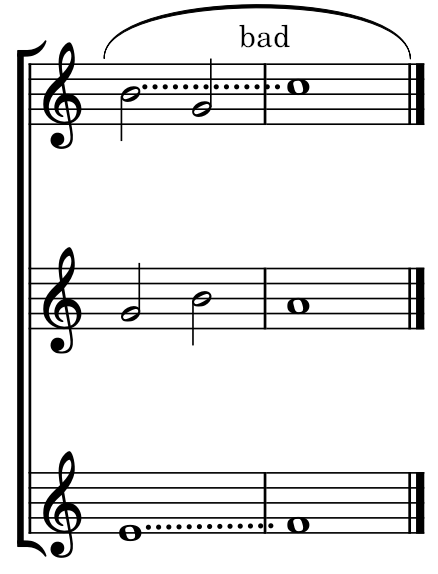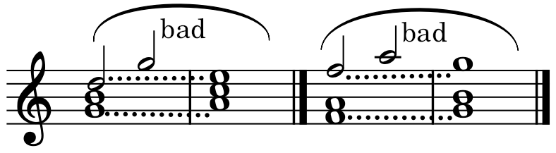 The previous resolutions are loose ends, as if there were two parallel octaves. Examples: