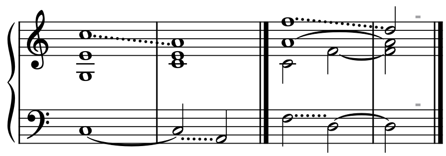 Similar cases are more subject to instinct and taste as they depend on the duration of the notes and especially on the influence of strong and weak beats, as will be see in Chord Placement in the Measure (5.3.)