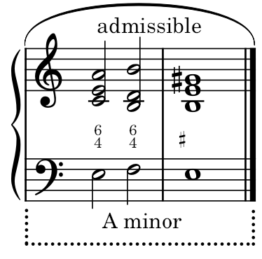This exception, which confirms the second inversion is harsh, makes it clear that any consonant chord, major or minor, in the second inversion without preparing the fourth imposes itself as the tonic chord, by provoking a tonal cadence discussed in the Cadences chapter. Thus, when the fourth is not prepared in the second inversion of a chord that isn’t the current tonic chord, it results in the impression of a new tonic, and thus, a modulation.
