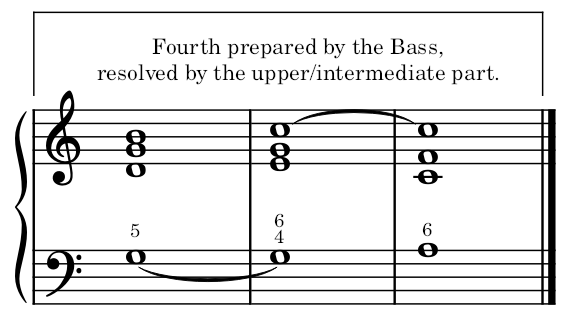3. Fourth prepared by the Bass, resolved by the upper/intermediate part.