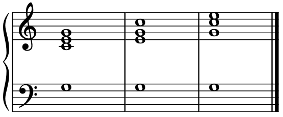 In the second inversion, the fifth, which is the Bass note, is preferably doubled. Example: