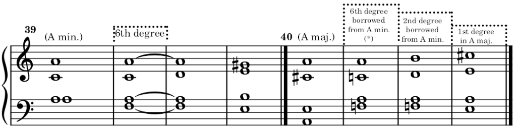 (*) This chord can also be considered the 1st degree of F major or 4th degree of C major.
