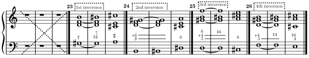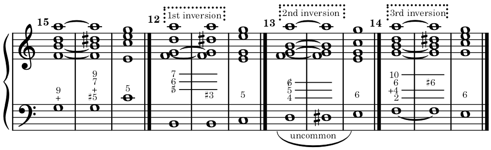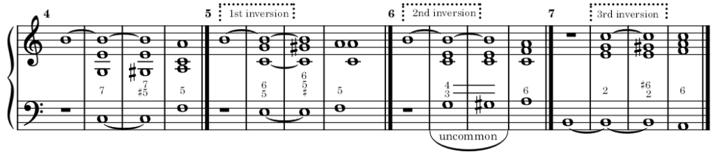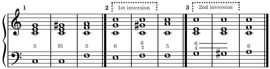 (*) The augmented fifth dominant chord is similar to the augmented tonic chord, in all inversions.